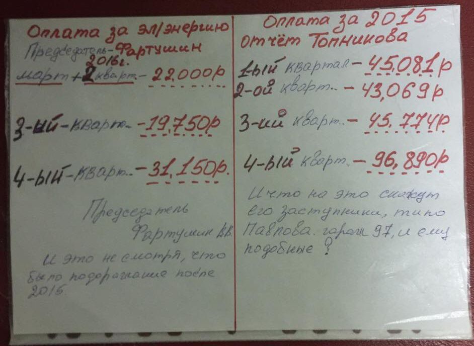 Стоимость оплаченой электроэнергии в 2016 году и по отчету Топникова за 2015 год